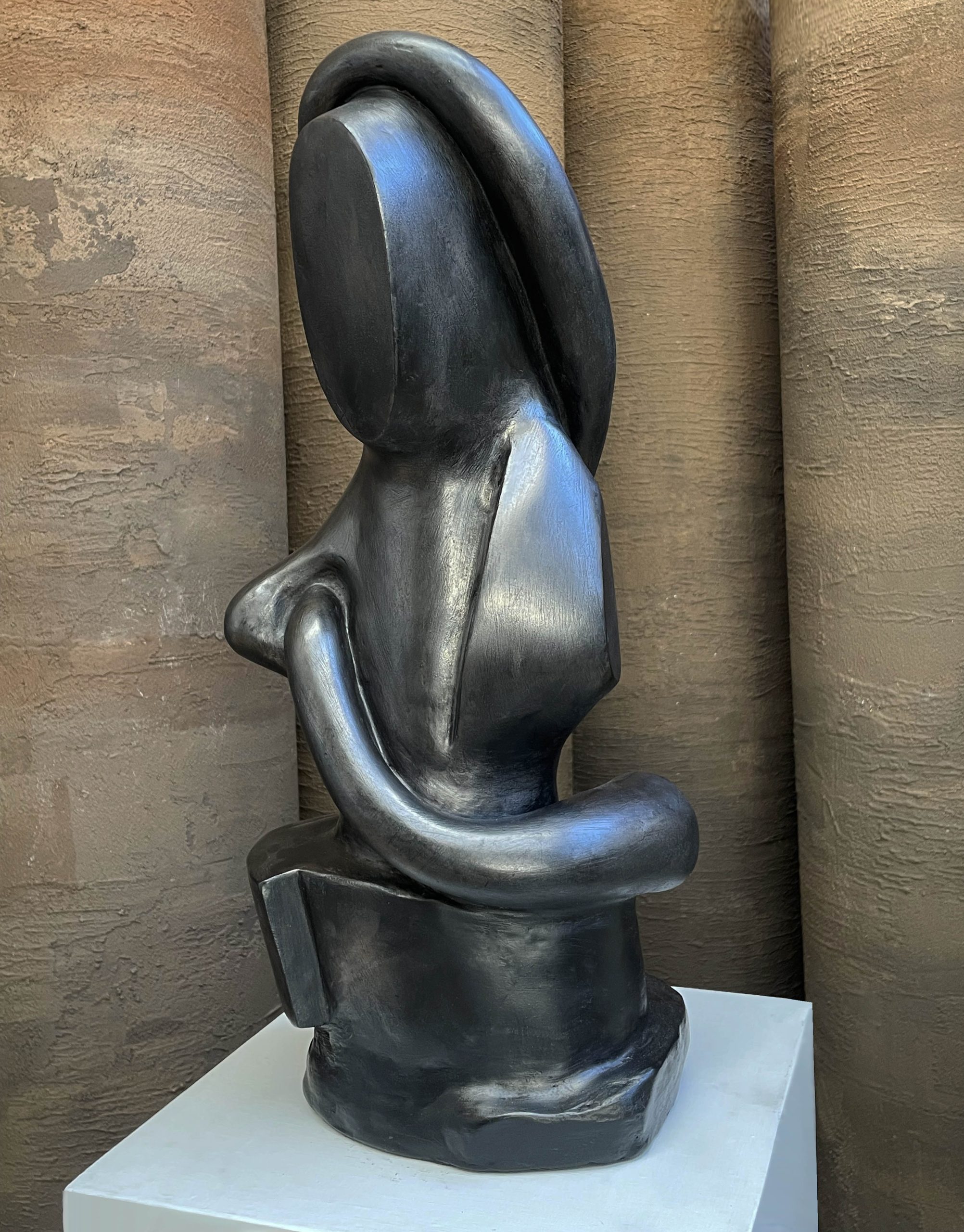 Le choix des matériaux n’est pas anodin chez René Barba. La céramique offre une texture directe, une relation tactile avec la terre, tandis que le bronze apporte une pérennité et une profondeur de patine qui sublime les jeux de lumière sur les courbes.